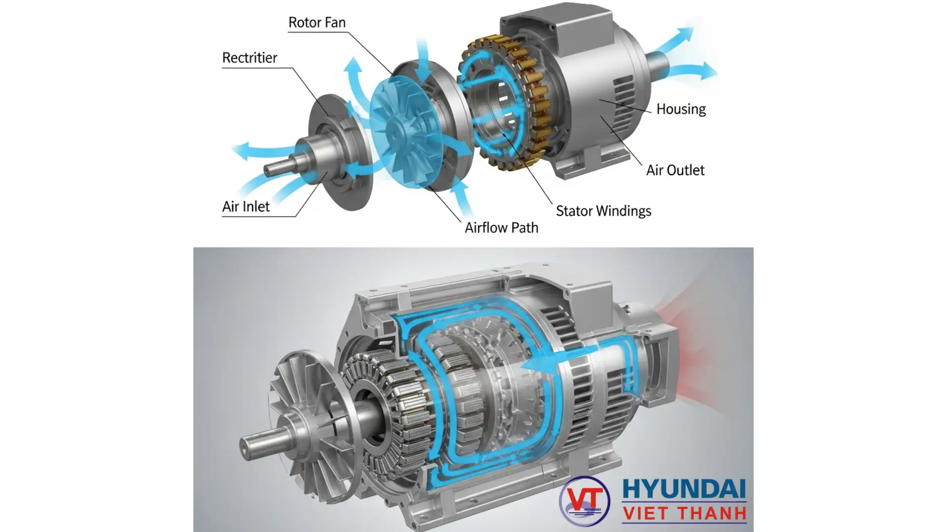 Đầu phát là bộ phận sinh ra điện năng trong máy phát điện. Quá trình này tạo ra lượng nhiệt lớn có thể gây hư hỏng các cuộn dây và cách điện. Hệ thống thông gió đóng vai trò quan trọng trong việc duy trì nhiệt độ vận hành an toàn cho đầu phát. Hyundai Việt Thanh sẽ phân tích chi tiết cấu tạo, nguyên lý và phương pháp bảo dưỡng.